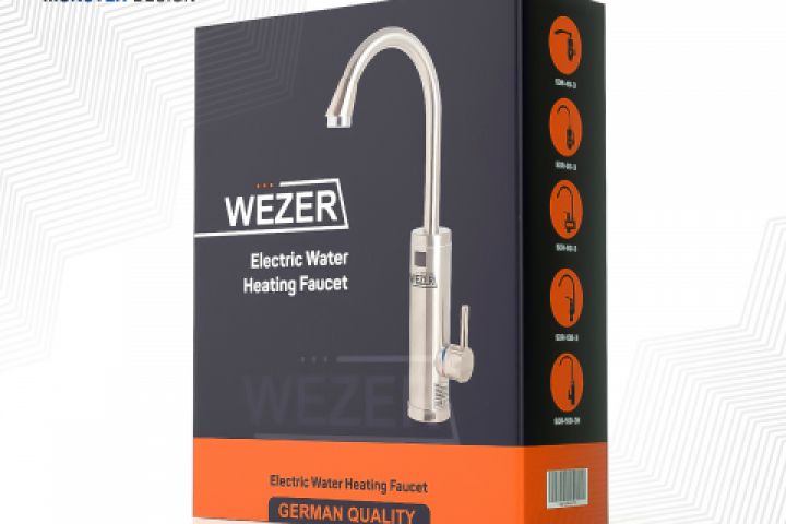 Элемент фирменного стиля на примере упаковки крана для фирмы сантехники Wezer. Развертка + визуализация.