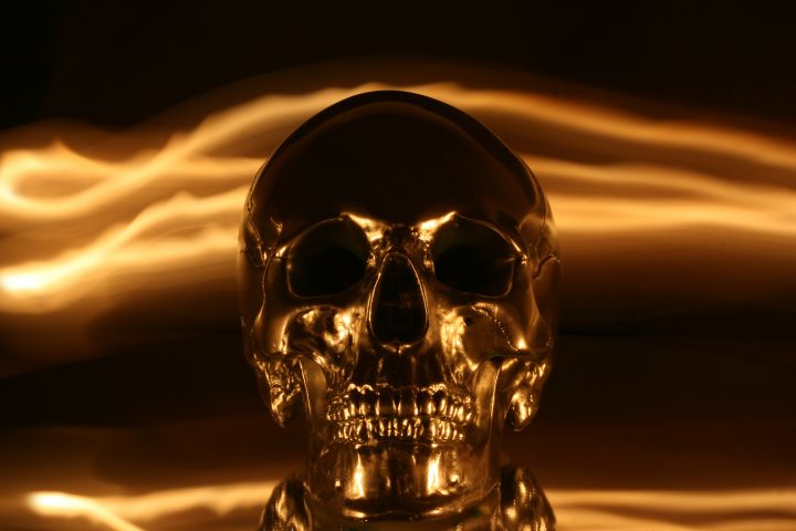 золотой череп концепция светового дизайна. фотосъемка - БЕЗ фотошопа (так снято)