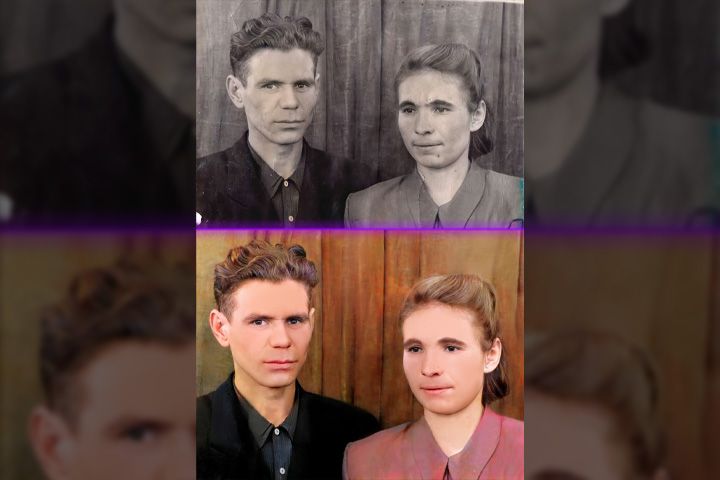 Реставрация старой фотокарточки, раскрашивание, выравнивание цвета кожи, ретушь.