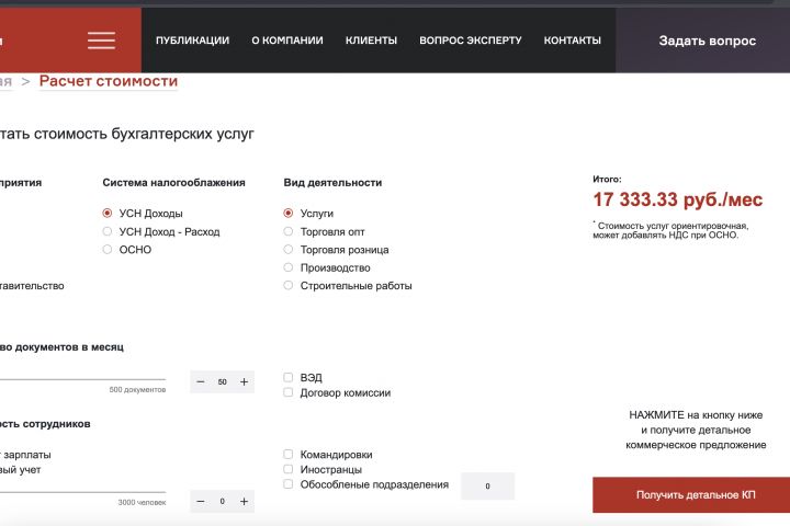Рассчитать стоимость бухгалтерских услуг на 1с битрикс