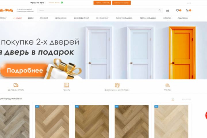 Реализация интернет-магазина по продаже дверей и напольных покрытий для магазина в Краснодарском крае (сейчас проект разошелся по всей РФ)