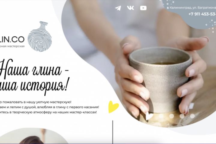 Создание одностраничника для гончарной мастерской под ключ Дизайн (разрабатывал дизайнер из команды) Верстка Посадка верстки на ModX Анимация