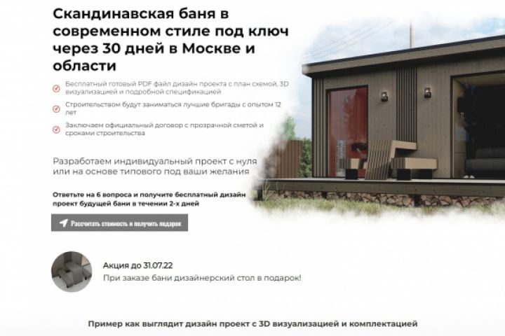 Ниша: Современные бани в современном стиле. Средний чек 800 000 – 1 500 000 рублей.