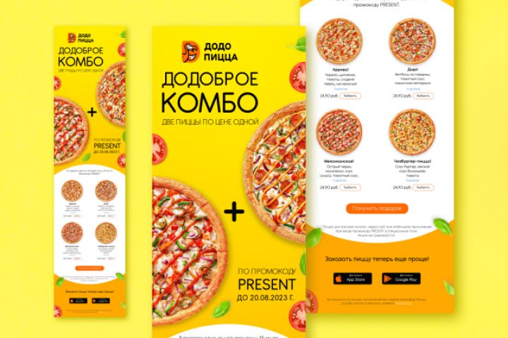 Email-рассылка с акционным предложением: Две пиццы по цене одной! Инструменты: - Figma; - Photoshop.