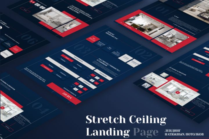 Дизайн одностраничного сайта(лендинга) для компании, занимающаяся установкой натяжных потолков европейского, азиатского и отечественного производства. Инструменты: - Figma; - Photoshop.