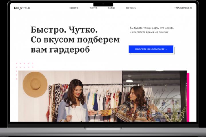 Сайт показывающий стиль, подробное описание предоставляемых услуг, с возможностью записаться Требования к дизайну: простота, лаконичность, яркие акценты