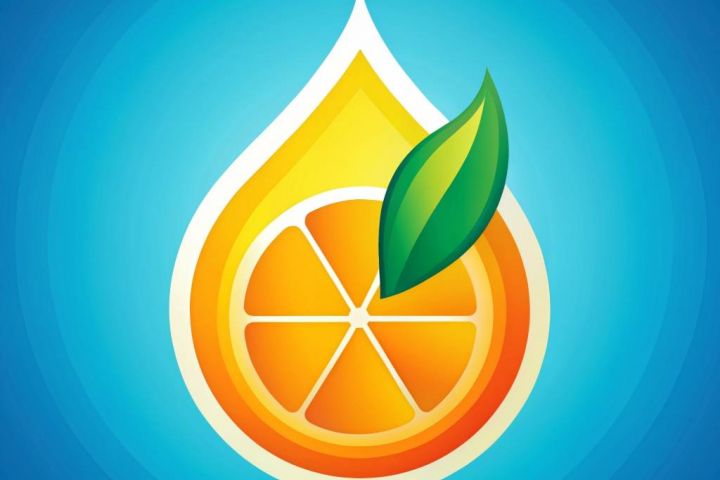 Отрисованный круглый логотип для свежевыжатых соков, в ярких оттенках