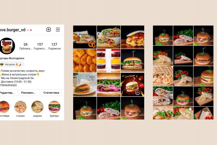 Составить ленту и аккаунт для магазина фаст-фуда