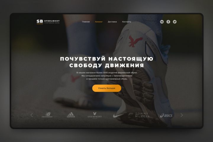 Дизайн одностраничного сайта-визитки для сети магазинов спортивной обуви.