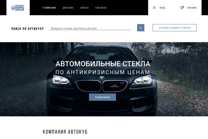Дизайн сайта по подбору и продаже запчастей и стекол для автомобилей Автокуб.
