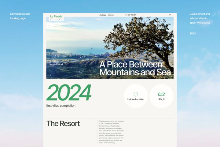 Задача, разработать современный и информативный лендинг для продажи вилл на побережье в Испании, Аликанте. Определена целевая аудитория, выстроена структура коммуникации через подачу информации, спроектирован интерфейс, разработан индивидуальный дизайн в стилистике релевантной контексту задачи и аудитории, выполнена валидная верстка, полная интеграция, анимации.