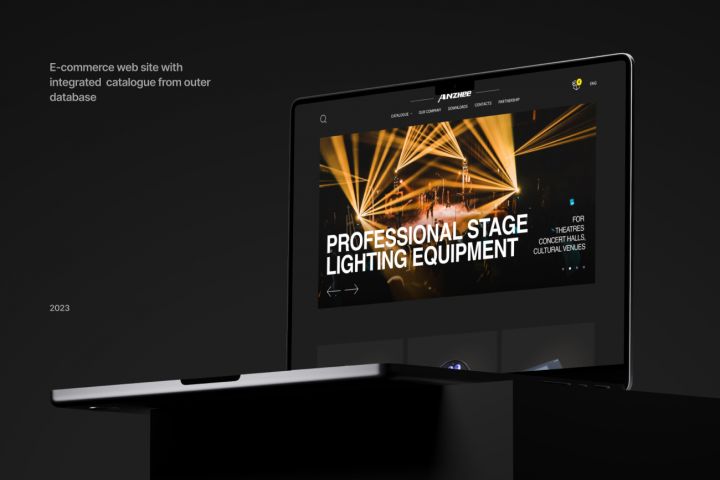 Разработка сайта для российского производителя сценического светового и звукового оборудования, Anzhee. Разработан уникальный дизайн в тональности соответствующей контексту проекта, разработана максимально наглядная и удобная навигация по каталогу, интегрирована внешняя база из 1С с продуктами.