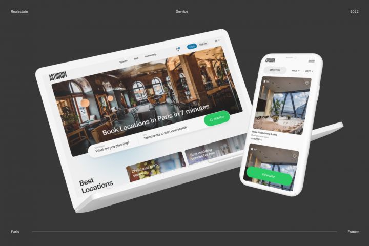Разработка сайта сервиса по аренде объектов недвижимости для event мероприятий в Париже. Задача заказчиком ставилась на редизайн и расширение функционала сайта. Переосмыслили каталог и работу с фильтрами, функционал размещения, управления, заказа объектов. Так же были переосмыслены полностью структура, путь пользователя и дизайн сервиса и приведены в соответствие нишей и запросами пользователя.