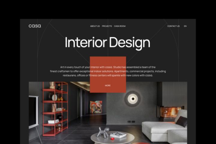 Сайт интерьерной студии. Дизайн отражает стиль в котором работает студия - мнималистичные, современные, функциональные интерьеры, которые отражают стиль жизни заказчика. Сайт получился такой же современный, минималистичный, функционально понятный и дружелюбный совсем как студия Casa.