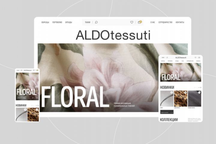 Разработка сайта каталога тканей для бренда ALDOtessutti. E-com сайт но без функционала оплаты на сайте. Сайт ориентирован на продажи в B2B сегменте.