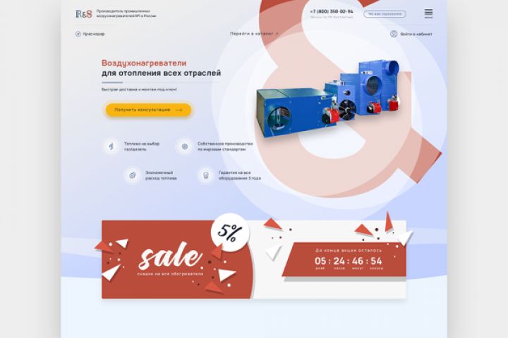 Разработка концепции дизайна сайта для компании производителя промышленных воздухонагревателей. Тула.