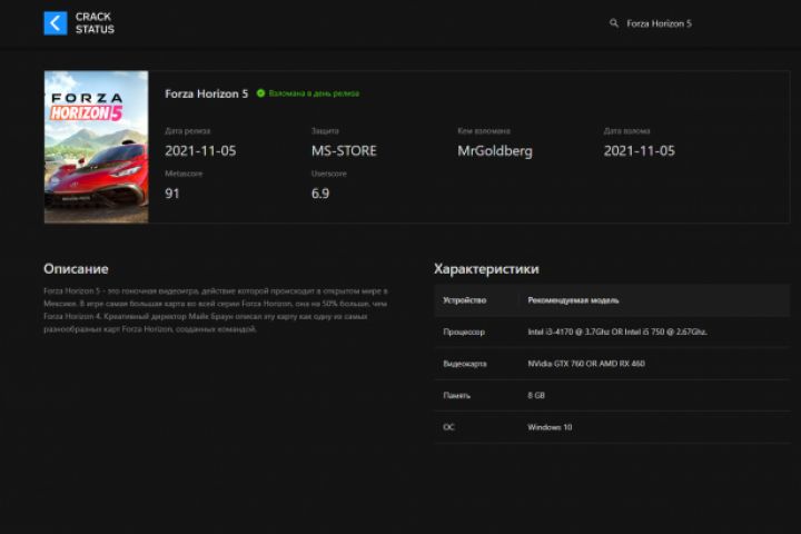 Веб-приложение для просмотра и отслеживания статуса взлома игр. Стек: - React - MobX - Ant Design - GameStatus Public API Подробнее на Github: https://github.com/iHelops/crack-status