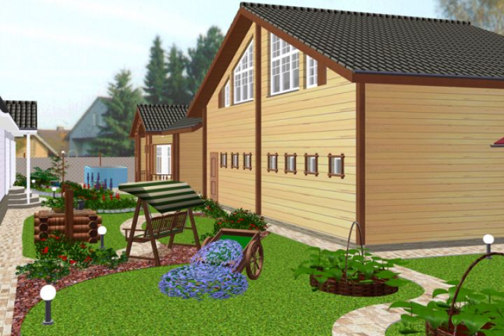 Комплекс - гараж, навес, баня+ ландшафт