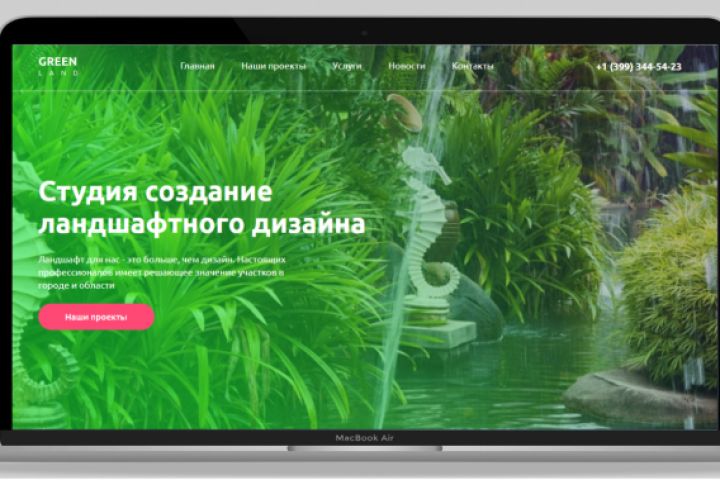 Сайт для обслуживания услуги Ландшафтного дизайна. Сверстано по методология БЕМ. На каждый картинки и кнопки использовал оживления при наведения курсора. Сайт адаптирован на всех устройствами под Bootstrap.