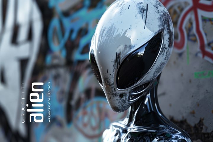 Создание концептуальных иллюстраций в стиле граффити с изображением инопланетянина, используя технологию искусственного интеллекта midjourney и photoshop. Весть проект можно посмотреть по ссылке ->