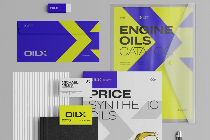 Комплексная работа над логотипом, брендовой графикой, фирменным стилей, упаковкой и веб сайтом для моторных масел компании Oilx.