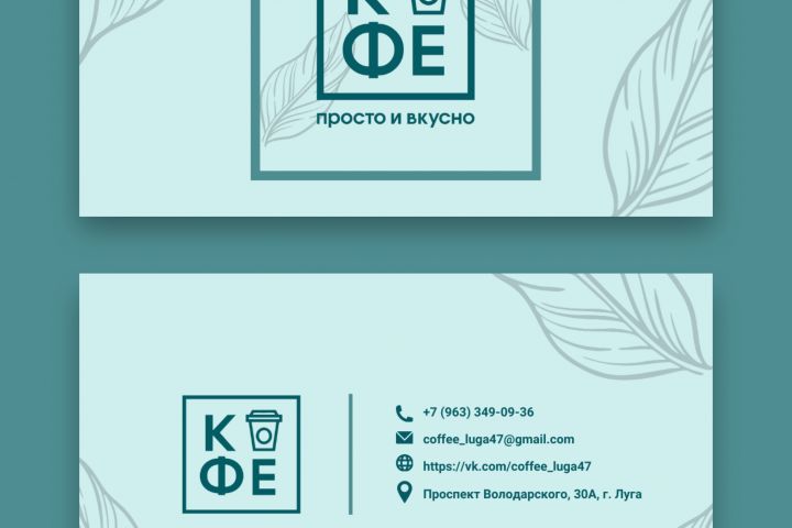 Двухсторонняя визитка для кофейни