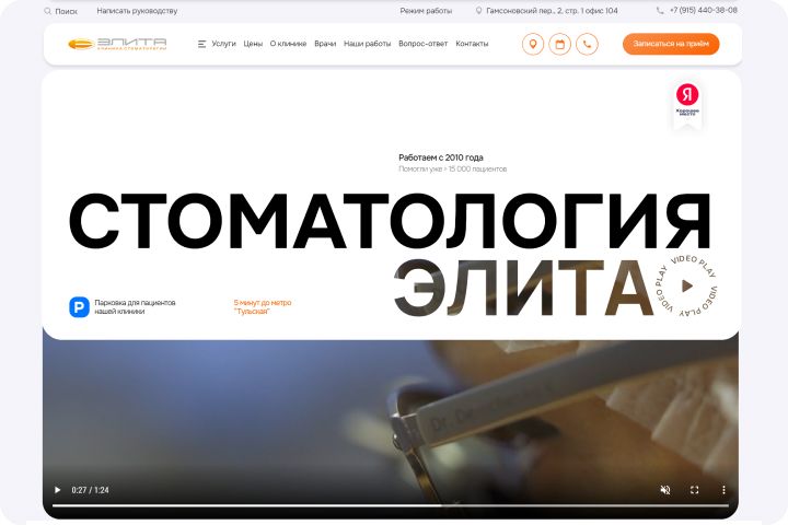 Сайт стоматологической клиники "Элита" в Москве. Дизайн создан в Figma, сайт разработан на Tilda. В настоящее время сайт находится в разработке.
