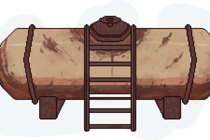 Пиксельный вариант бочки для воды по вселенной Fallout Equestria был создан для костюмного сервера New-Pegasus Town. Для данного сервера было создано большое количество кастомных предметов.