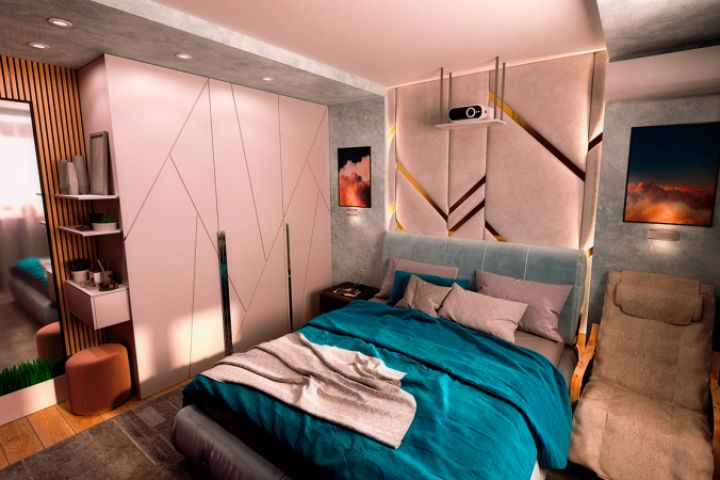 Визуализация спальни с мягкой стеной