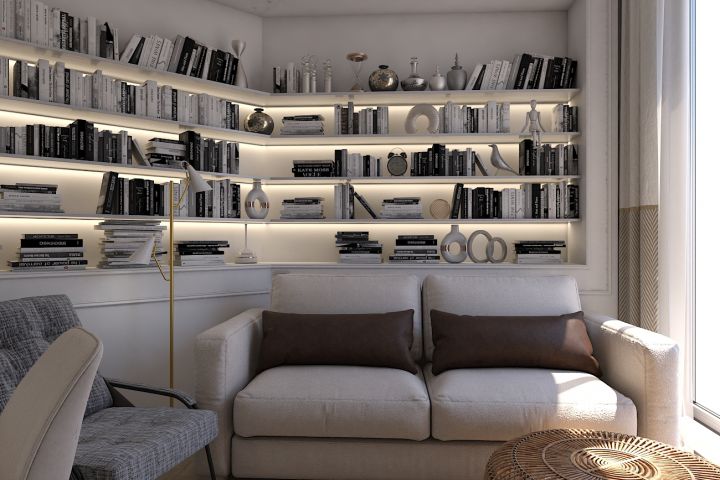 Рабочий проект с 3d-визуализацией. Светлая квартира в стиле неоклассики. Заказчице хотелось создать утонченную атмосферу с паркетом елочкой и классическими филенчатыми дверями. Мы дополнили интерьер современным декором, интересными светильниками, утонченным текстилем и зеркалами.
