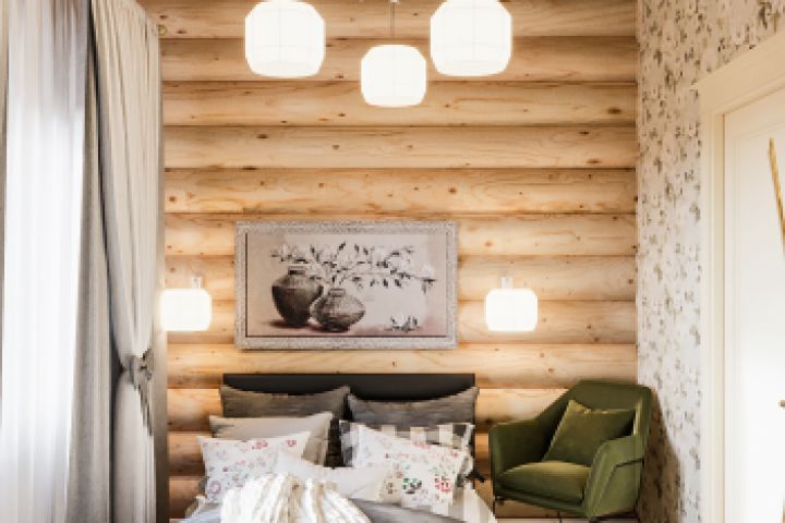 Спальня в доме из бруса