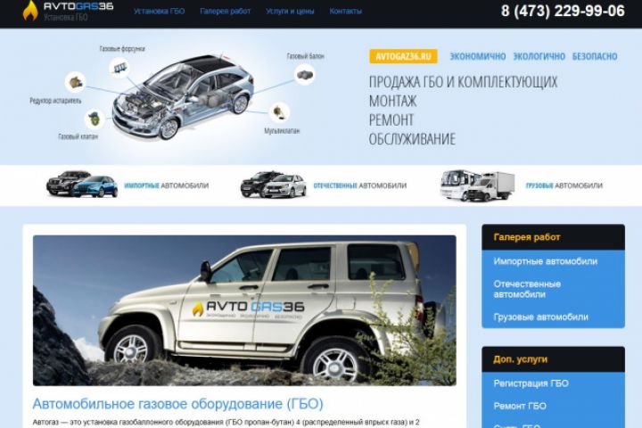 Мной создана большая часть текстового контента для данного сайта (описание услуг, установка ГБО на конкретные модели, текст в разделе "оформление ГБО в ГИБДД)