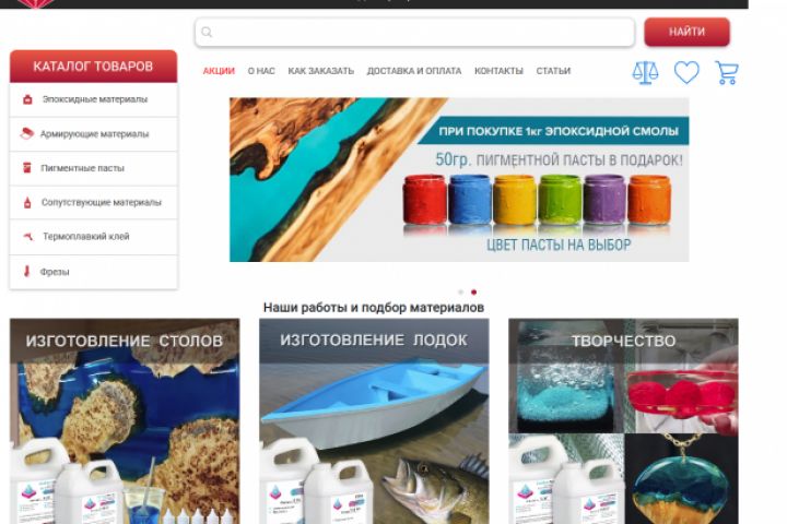 Описания товаров, а также процесса изготовления изделий с использованием эпоксидных смол, пигментов, армирующих материалов.