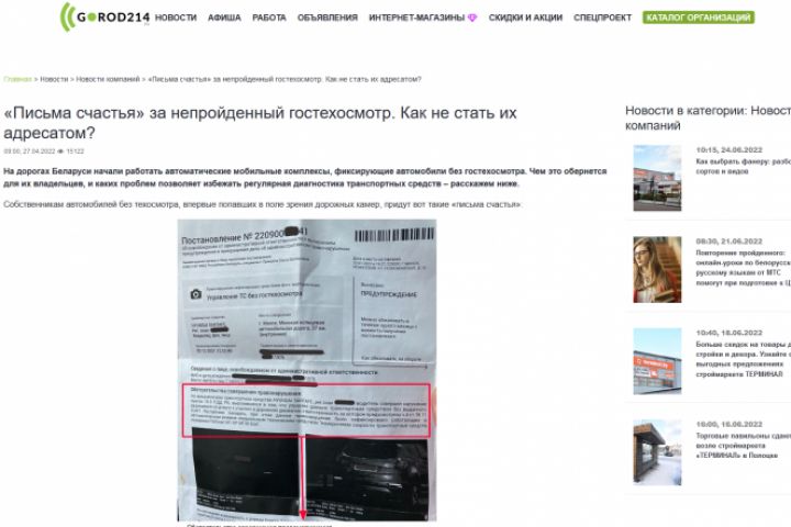 Материал для городского портала, мотивирующий автовладельцев к прохождению техосмотра.