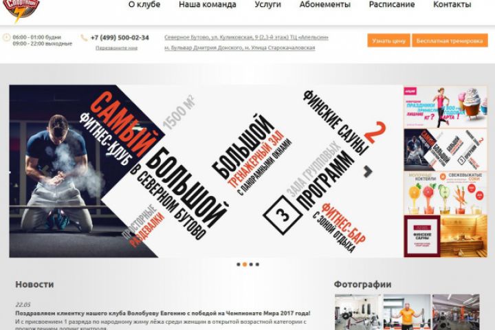 Текст страницы "О клубе", а также описание направлений фитнеса и фитнес-программ в разделе "услуги" созданы мной.
