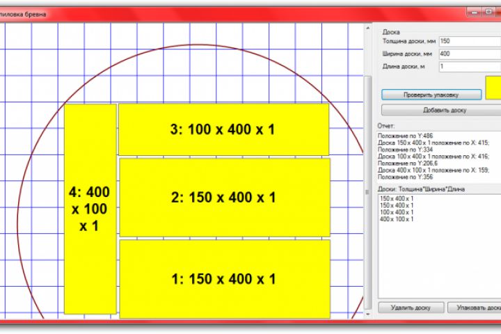 2) программа упаковывает доски в максимально плотное бревно