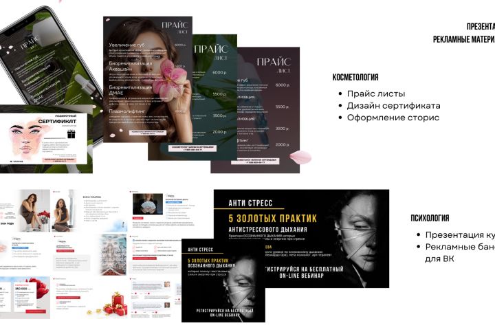 Прайс листы Дизайн сертификата Оформление сторис Презентация для курса Банеры