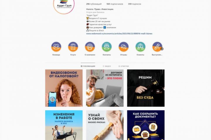 Оформление инстаграма для налоговых юристов