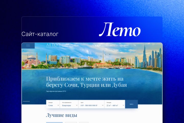 Сайт-каталог для брокера элитной недвижимости в Сочи и Дубае. Разработан на платформе 1С-Битрикс.