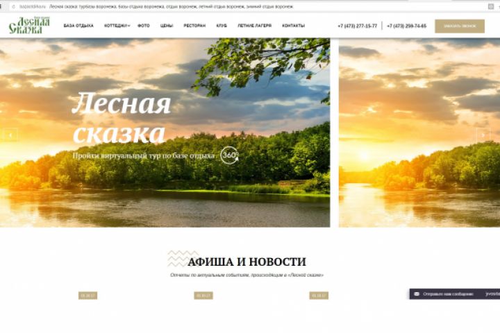 База отдыха лесная сказка, сайт адаптивный, на сайте можно заказать себе номер на определенные даты или коттедж. Оставить заявку на банкет или свадьбу.