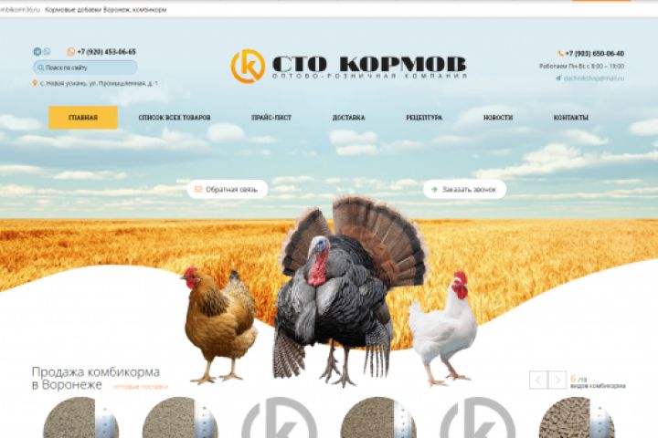 Сайт комбикормов для птиц и животных, а также сельскохозяйственного оборудования. Каталог. Сайт сделан под сео.