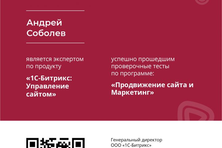 Сертификат Битрикс "Продвижение сайта и маркетинг"