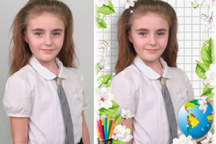 Ретушь, замена фона, рамка