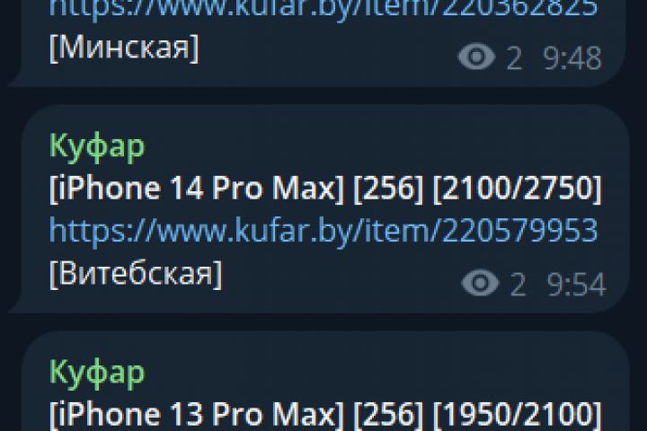 Скрипт на ЯП python который информирует в телеграм канал о товаре с требуемой ценой и заданными параметрами