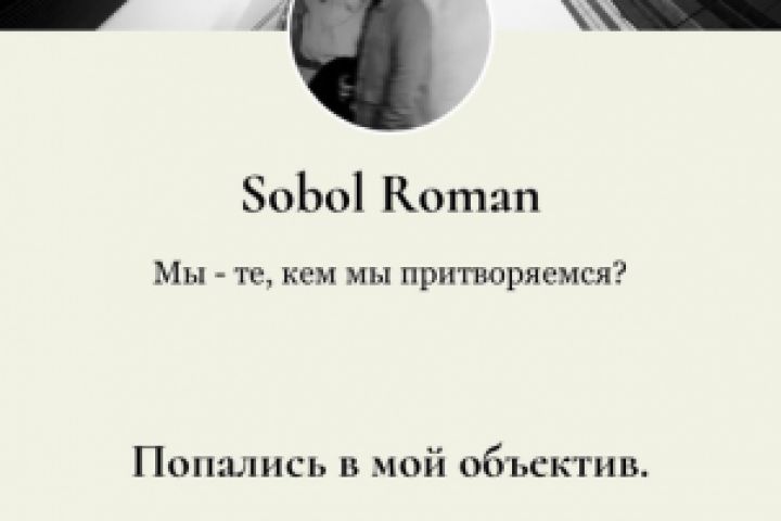 Сайт-визитка, для фотографа, на сайте представлены его работы, контакты и соц. сети