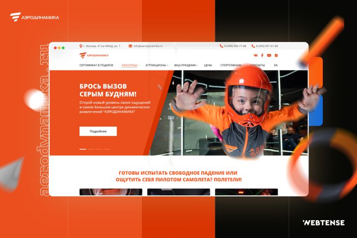 Сайт для центра развлечений Аэродинамика CMS Wordpress https://webtense.ru/portfolio/korporativnyy-sayt-aerodinamika/