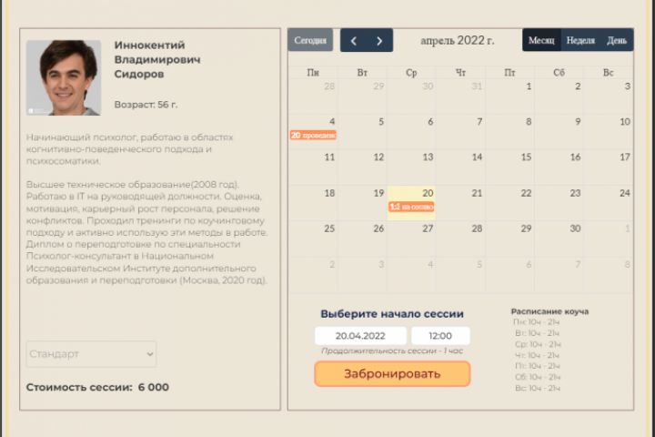 - коуч согласовывает проведение сессии (возможно изменение даты/времени) и присылает ссылку клиенту на видеосессию (Skype/YouTube/иное);