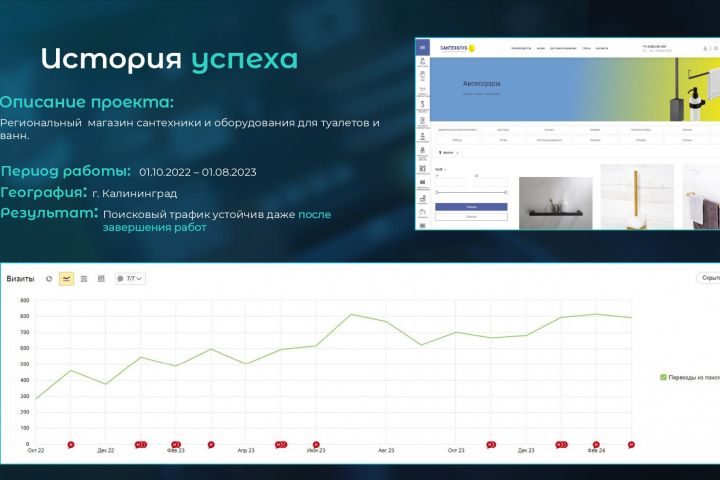 Региональный магазин сантехники и оборудования для туалетов и ванн. Поисковый трафик устойчив даже после завершения работ