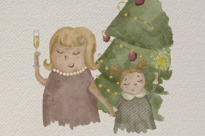 Эта новогодняя иллюстрация использовалась для дальнейшей печати в качестве открытки.
