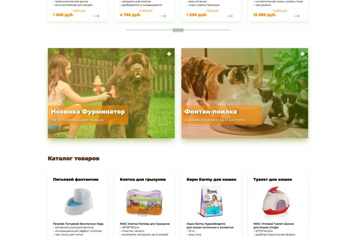 Задача по созданию интернет-магазина "Кошечки-Собачки" с дизайном мобильной версии и версии для планшета. Для сайта зоотоваров выбраны натуральные природные цвета - зеленый и оранжевый.